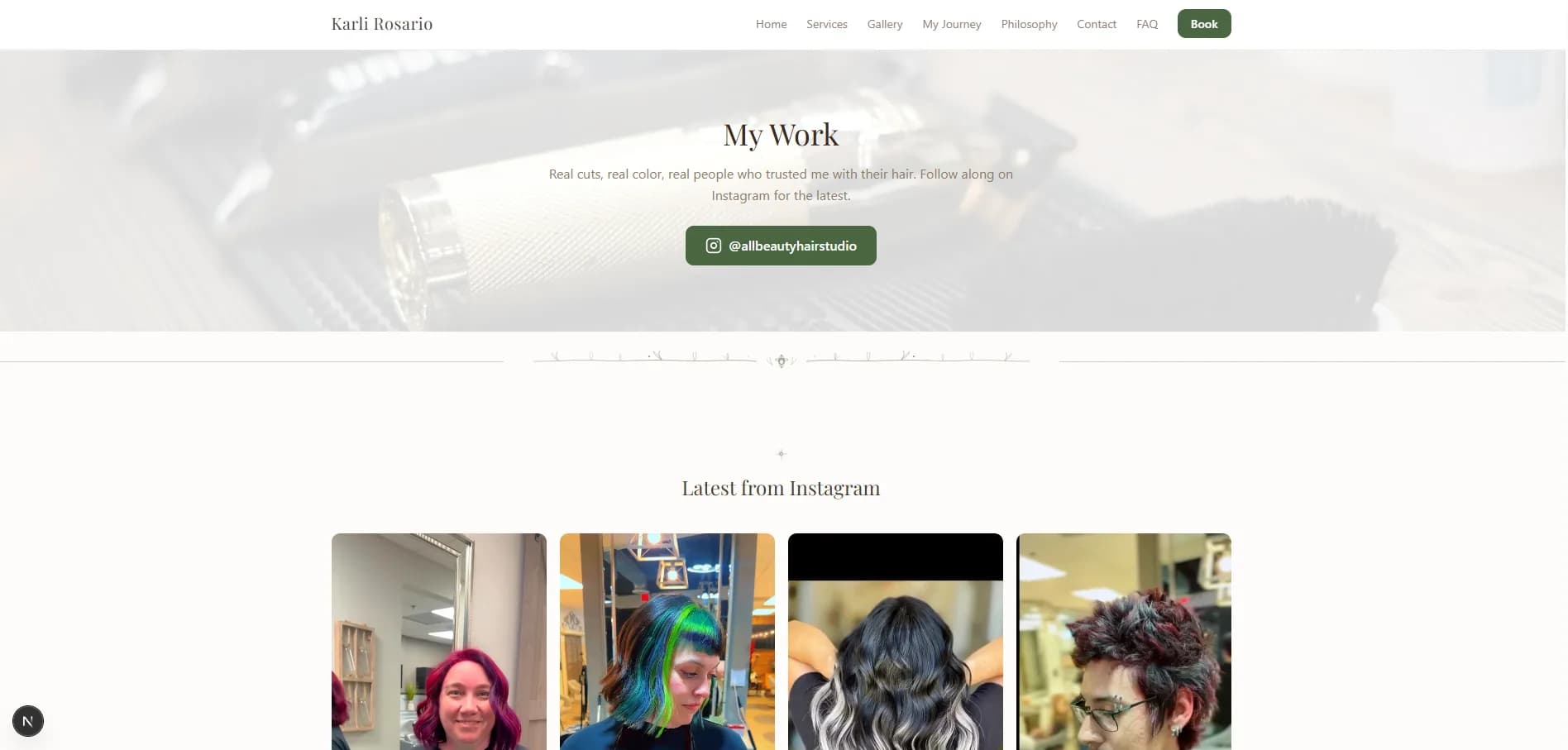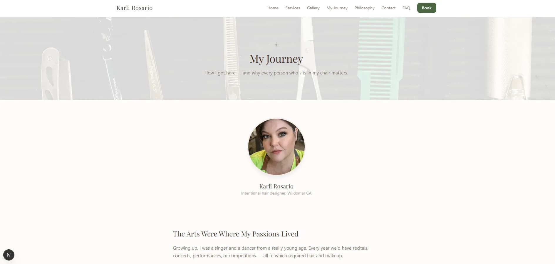 - Personal brand website built around Karli Rosario's story, philosophy, and creative journey