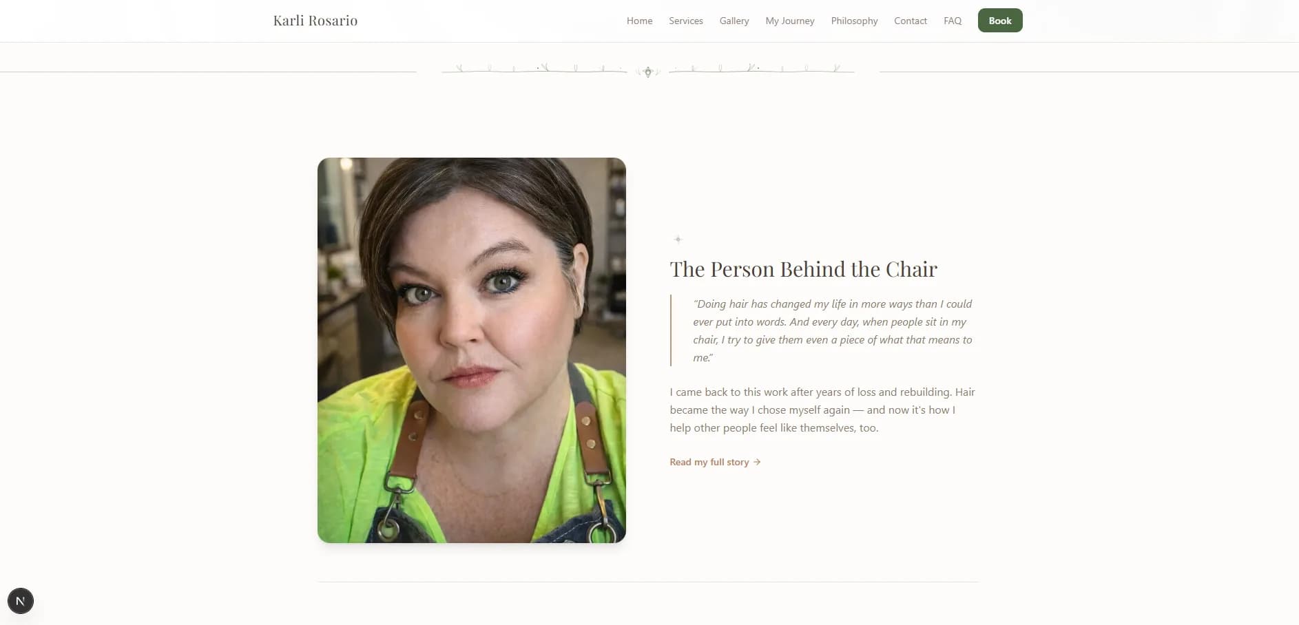 - Personal brand website built around Karli Rosario's story, philosophy, and creative journey